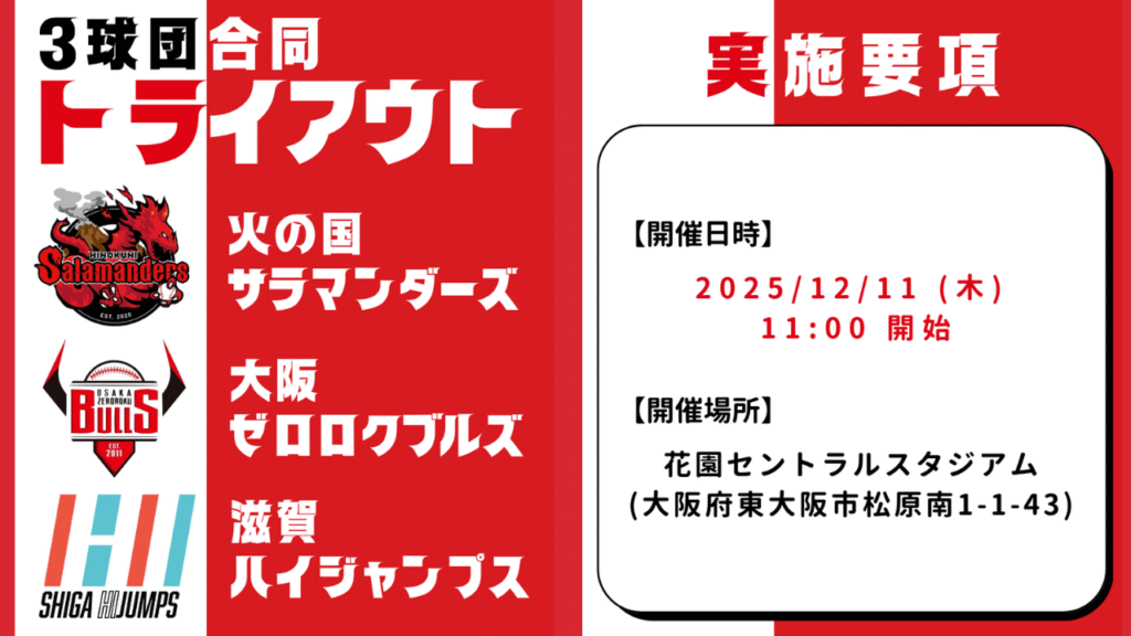 今回のテーマは、【2025年】独立リーグトライアウト情報